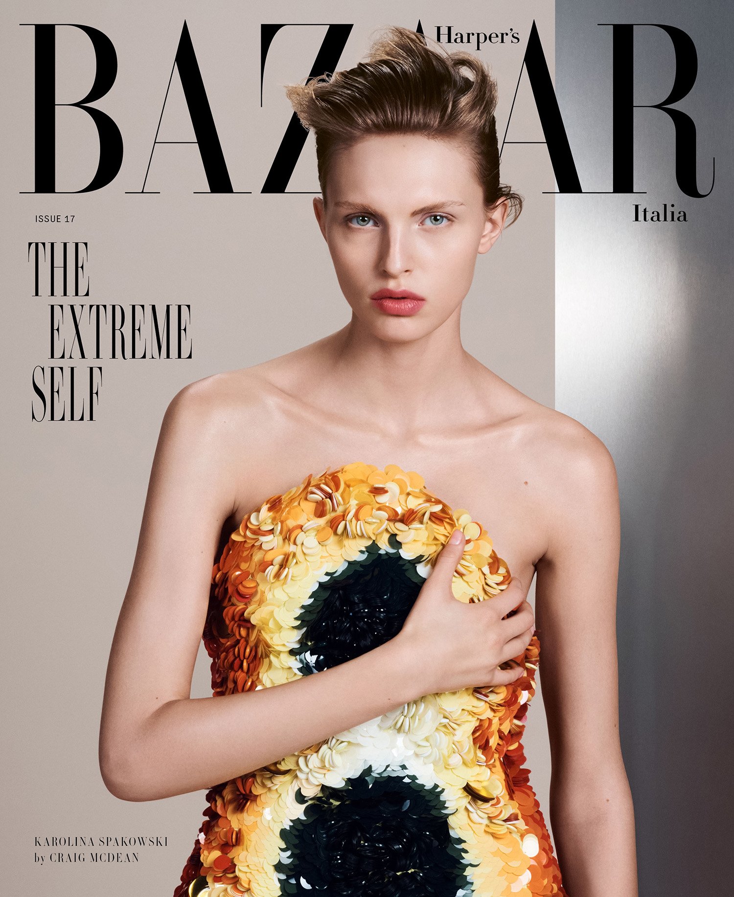 Rising German model Karolina Spakowski makes an appearance on the cover of Harper’s Bazaar Italia’s February 2025 issue. Captured by photographer Craig McDean, she wears a stunning Bottega Veneta dress.