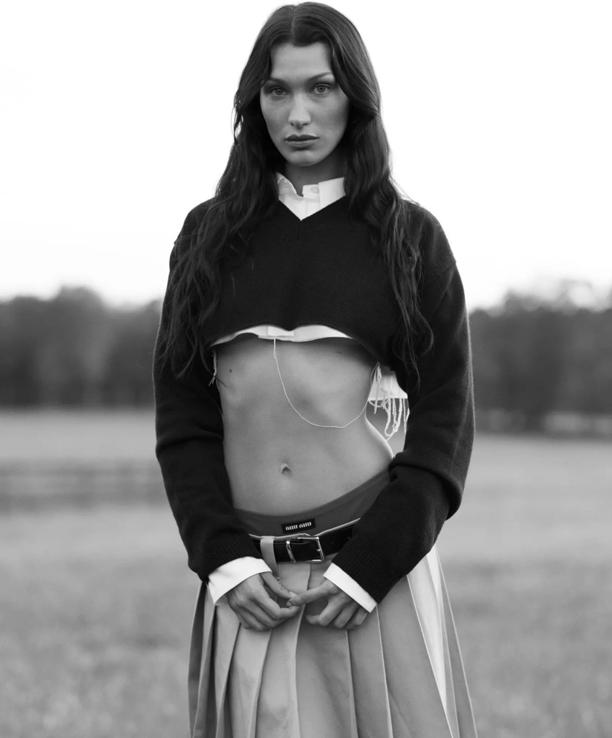The cover story named ‘’Being Bella’’, styled by Gabriela Karefa-Johnson, showcases the top model in a designer wardrobe from Celine by Hedi Slimane, Olivier Theyskens, Miu Miu, Louis Vuitton, Tom Ford, Ralph Lauren Collection, Saunders, Marni, Molly Goddard, Carolina Herrera, Willy Chavarria, Tory Burch and Saint Laurent by Anthony Vaccarello.