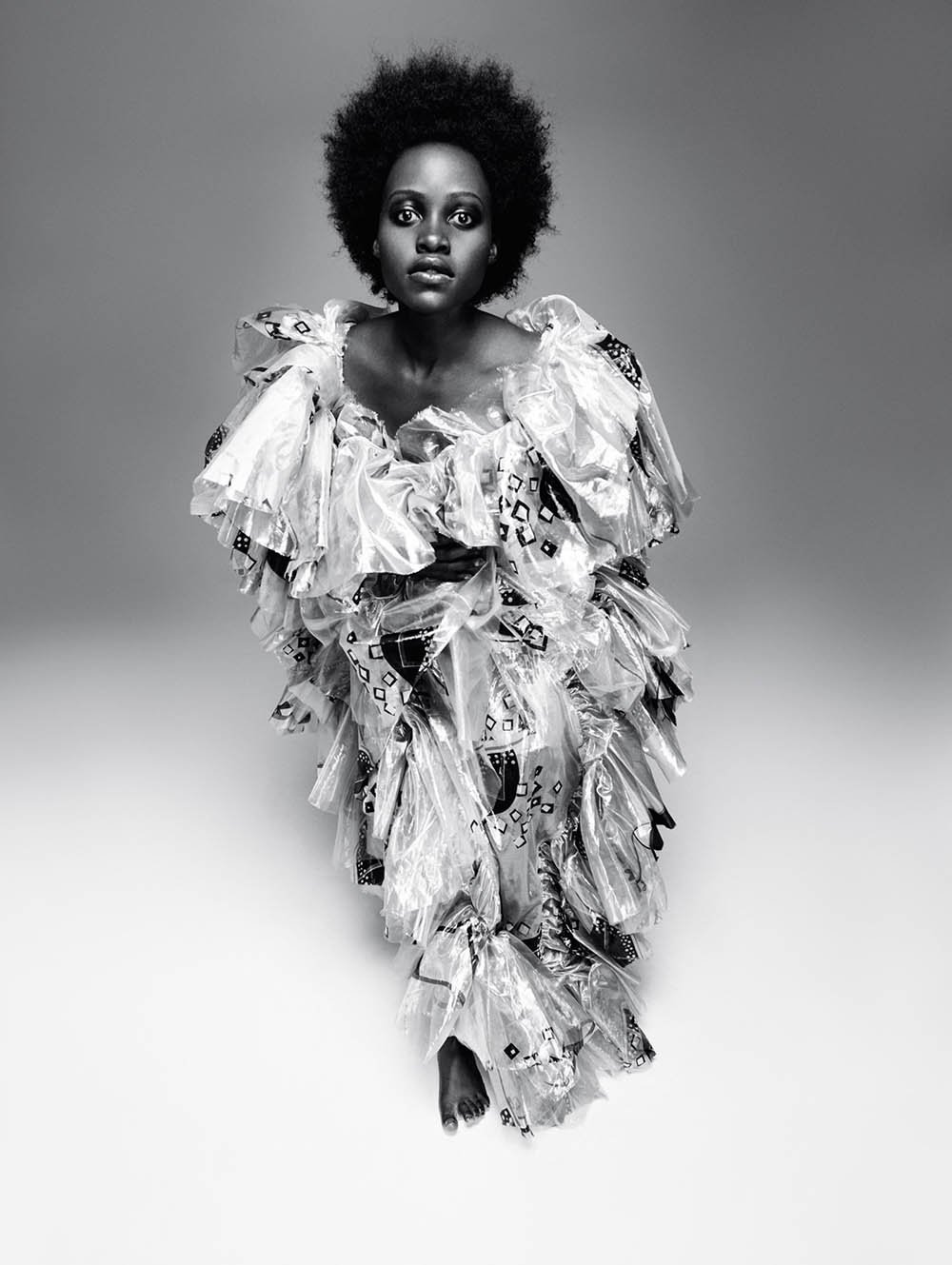 Kenyan-Mexican actress Lupita Nyong’o lands the Spring/Summer 2019 cover of AnOther Magazine in a silk-wool dress with sequin embroidery from Prada. Lensed by photographer Willy Vanderperre, in the black and white cover story, stylist Olivier Rizzo dresses ‘’Us’’ star in designs from the likes of Saint Laurent, Valentino, and Vivienne Westwood.